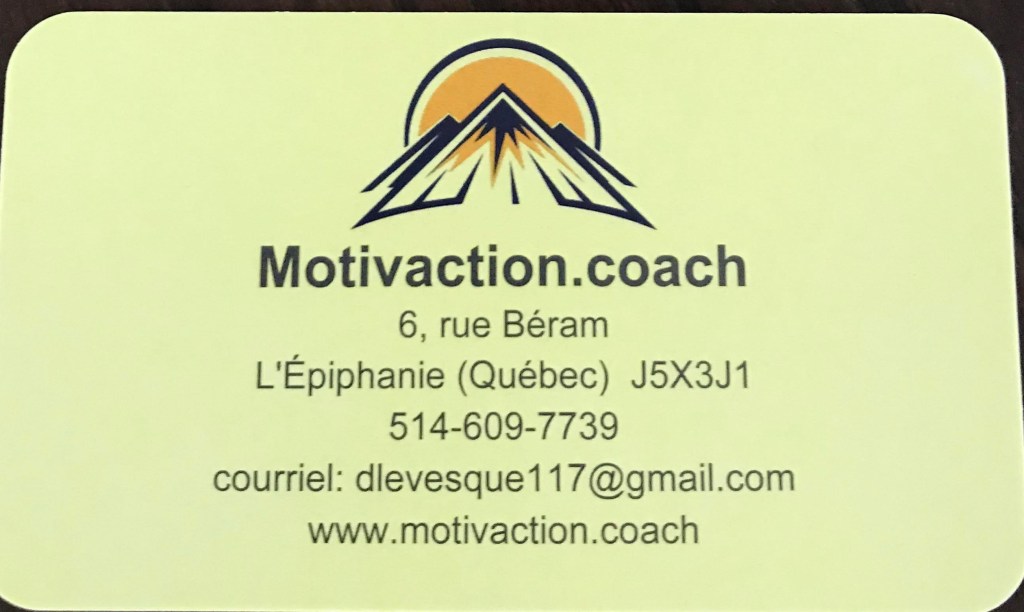 Premier geste important pour moi, je vais donner priorité à un rêve que j’ai depuis quelques années de faire des conférences. Lors de mon année de gouverneur optimiste, j’avais écrit une conférence que je donnais aux jeunes octogones (mouvement optimiste pour les 12 à 17 ans) qui s’intitulait Ai-je le droit de rêver? Cette conférence durait environ 30 minutes, je travaille actuellement pour l’augmenter à environ 1h à 1h30. Depuis janvier dernier, j’ai créé un blogue motivaction.coach, une plateforme pour faire connaître mes articles, je viens de la réactiver.