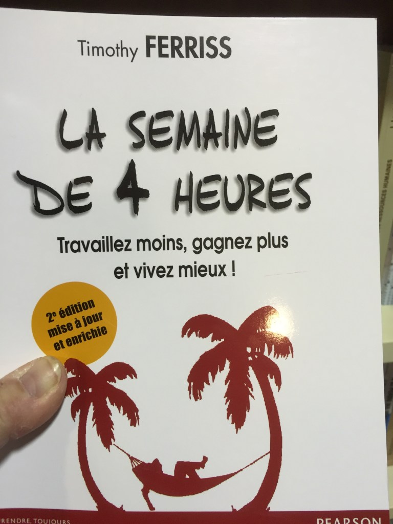 Il y a quelques jours, je suis tombé sur un livre que j’ai toujours voulu acheter soit « La semaine de 4 heures » par Timothy Ferris. Cet homme dirige une entreprise multinationale aux quatre coins du monde. Depuis 2003, il est professeur à Princeton où il enseigne l’entrepreneuriat comme vecteur d’un nouvel art de vivre.